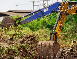 Limpeza e remoção de entulhos e vegetação para preparar o terreno, facilitando o início das construções.